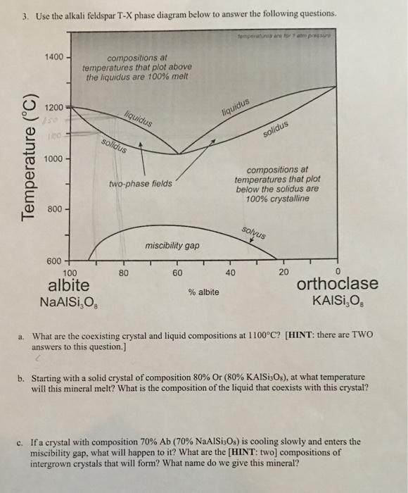 Example 6--Reaction-Path CalculationsIn this example, the precipitation of phases as a result of incongruent dissolution of K-feldspar (microcline) is investigated. Only the four phases originally addressed by Helgeson and others (1969)--K-feldspar, gibbsite, kaolinite, and K-mica (muscovite)--are considered. Yes, the solid feldspar in this diagram is a solid solution—because it is one phase with composition that varies continuously between two pure phases—anorthite and albite. 18. List the phases present at each point. Fig Phase diagram for Or-free plagioclase feldspars, showing liquidus and solidus curves at atmospheric P and probable subsolidus relationships in feldspars with equilibrium order. In PL (Fig 1.7)"' the r Of the liquidus-solidus loop is strongly dependent on PH20 and also on the small amount Of Or that all PL contain. Strong compositional zoning,