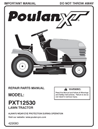 Poulan repair parts and parts diagrams for Poulan PP 105G30 (960220027-01) - Poulan Lawn Tractor (2016-08) Order Status Customer Support 512-288-4355 My Account Login to your PartsTree.com to view your saved list of equipment. Lawn Mower Belts. Find the right replacement belt for your riding mower or tractor. Shop for Poulan Lawn Mower parts today, from 532087877 to 873800500!. We recommend you refer to model specific diagrams for appropriate uses and . We are here to help – over 324 genuine Poulan repair and replacement parts. Parts Diagrams (12). Craftsman 247290000 rear-engine riding mower parts - manufacturer-approved parts for a proper fit every time! We also have installation guides, diagrams and manuals to help you along the way! Poulan PP4218A gas chainsaw parts - manufacturer-approved parts for a proper fit every time! We also have installation guides, diagrams and manuals to help you along the way!