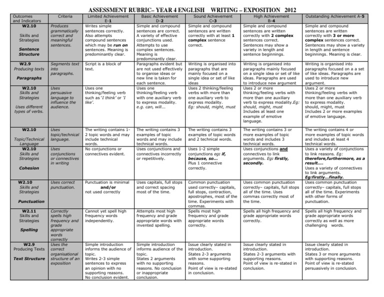 Exposition Rubric Yr 4 Pdf Sentence Linguistics Word